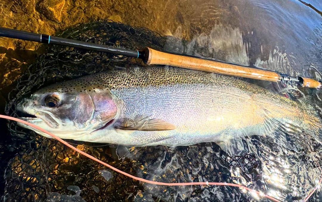 It has been a pretty busy week for me. I gave some lessons, did some guiding, got to do some “scouting,” fishing, and even caught a pretty nice rainbow trout with the ole two handed rod. There’s an entire debate about whether the rainbow trout that live in the Great Lakes are to be considered steelhead or not. The West Coasters maintain no salt no steel. I suppose they are correct, but that means we have to name our rainbows something other than steelhead. Here I am officially promoting the name, “Greater Steelhead.” Since they are not steelhead, but have the same genes, and they are in the Great Lakes, then it only seems right to call them what they are… Greater Steelhead. But I digress. I was also given the opportunity to do a demonstration at “The Early Show” put on by DRiFT in Chicago, IL.