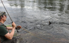 I caught 2 graylings and we spent some time to figure out how we could fish other side of river. We found lot of rising fish, as usual on other side. Lot of fish in small area, first Stefan tried to wade in spot that he could cast, as he didn't know river and with high water impossible to see bottom he had to give up.