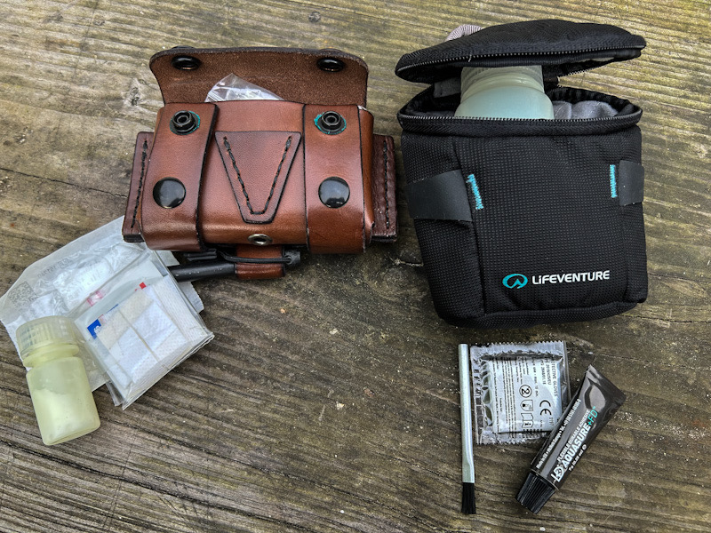 Among who knows how many small items I bring when fishing several days away from home, domestic or not, are a couple of repair kits. Three in fact, but the third is just a special key needed to open the brake system of the reels I use, a tube of silicone grease and a spare bearing, so that’s hardly worth showing. I bring a kit to repair pinholes and punctures in my waders and a kit to repair myself or a friend.