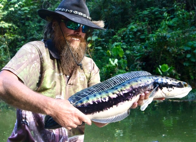 On the Sunday FP I talked about lake “downtime”, which is what I experience in January through to early March here in the Malaysian Jungle, and yesterday, in a shallow flooded area I call “The Gardens”, I found a set of small bright red babies and two beautiful-looking Giant Snakehead. I caught one of these (of course!). I love the greens on this fish and can only surmise that they, like many fish, take on the hues of their surroundings.