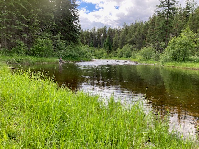 Slipperier than snot on a doorknob. Slipperier than a greased bowling ball. This is THE most slippery substrate I’ve ever fallen on. Of course, it didn’t help that I need to replace the studs on my old Simms Headwaters wading boots. We’d hiked in nearly 2 miles to the creek on trails that are well used in the winter, but much less so in the summer. The last two times we’d driven by the parking area, it was empty, but not so on Sunday. There were four cars, including an antique car from the 1920’s or 1930’s with a rumble seat. On the side was written “Warden. Montana State Prison.” Obviously, the car still ran and still had the original license plate. Pretty cool!