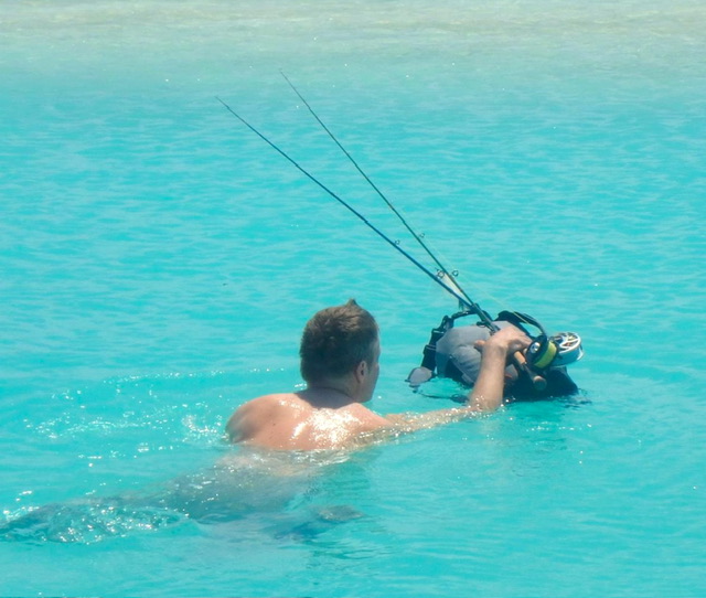 As far as the fishing is concerned, things have been going pretty well. We did have a spectacular day where we found tailing pods of bonefish from arrival on the flat, before midday, to the point where we had to leave in order to get off the flat before it was pitch black. We'd actually considered turning back to the car just before we got to the fish as we'd not seen anything at all in a couple of hours of wading – however we both agreed we'd push on a little bit further because it looked quite 'fishy' in the direction we were heading. We actually fished two flats during this bonanza – we used our new dry-bags that we've replaced our bum-bags with to help us swim across a channel to the adjacent area where bonefish were also tailing. Placing our shirts, caps, glasses and anything else we wanted to keep dry inside the bag, then trapping a load of air in it made for a great floatation device. Putting the rods on top of the bag with one arm whilst leaving the other free to paddle made the crossing easy, although there's still a slight feeling of unease as we know big sharks use these channels to commute also.
