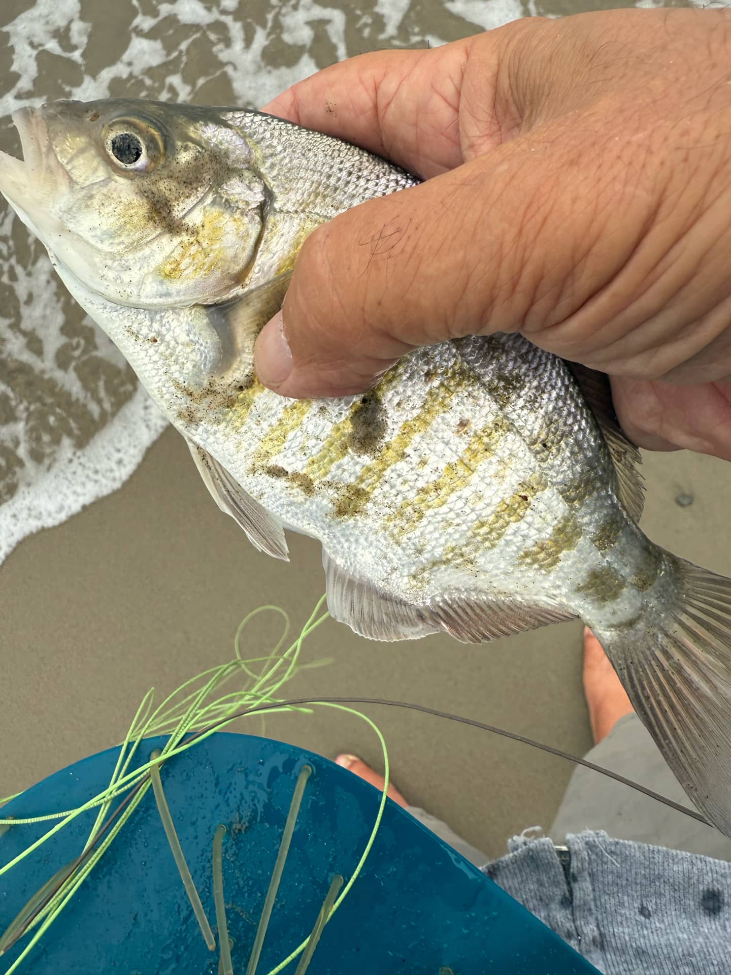 Thursday was amazing. Conditions at the beach were sweet - wave energy low, low-low tide right at dawn, and a little later some sun that broke through the typical morning gloom to light up the flats. Fish were everywhere. Backs out, tails up, cruising every little channel. Eating in the swash. I know I saw well over 100 fish. It was crazy. I didn’t catch any. I brought one to hand that I had hooked in the tail - sorry Mr. Bean - and had two other maybe-bites. There were two other flyfishers out there having similar experiences. While the shots are always difficult, I had lengthened my leader and did not line or spook many. I tried a pink surfin’ merkin and watched good fish swim past lit like it wasn’t there. I threw some gray merkins and corbina crack flies at them too. So many shots. Many of these fish were 10 to 40 feet from the swash and maybe crabs aren’t available there. Could it be that they were feeding on something else? Worms maybe?