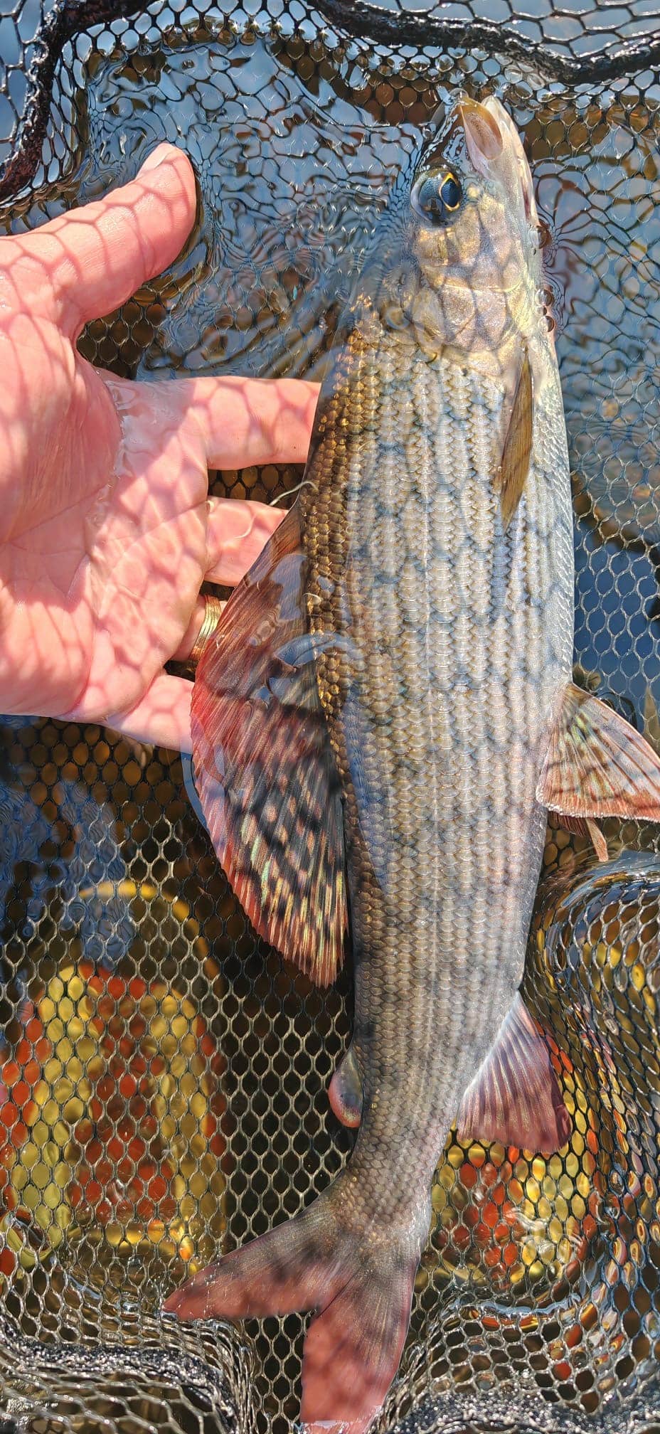 First casts was okay but fly was not really where I wanted to be, kind of wrong but not really. Next cast was good and fish agreed, splashing rise and take, nice 40 cm grayling. Next cast I made close to me and let hotspot settle, nice 35 cm grayling just behind main stream. New cast to hot spot, rise but I couldn't hook. Next cast and nice 38 cm grayling. Then few empty casts and I changed a little how fly will go. And again nice 39 cm grayling, third one from same pocket.