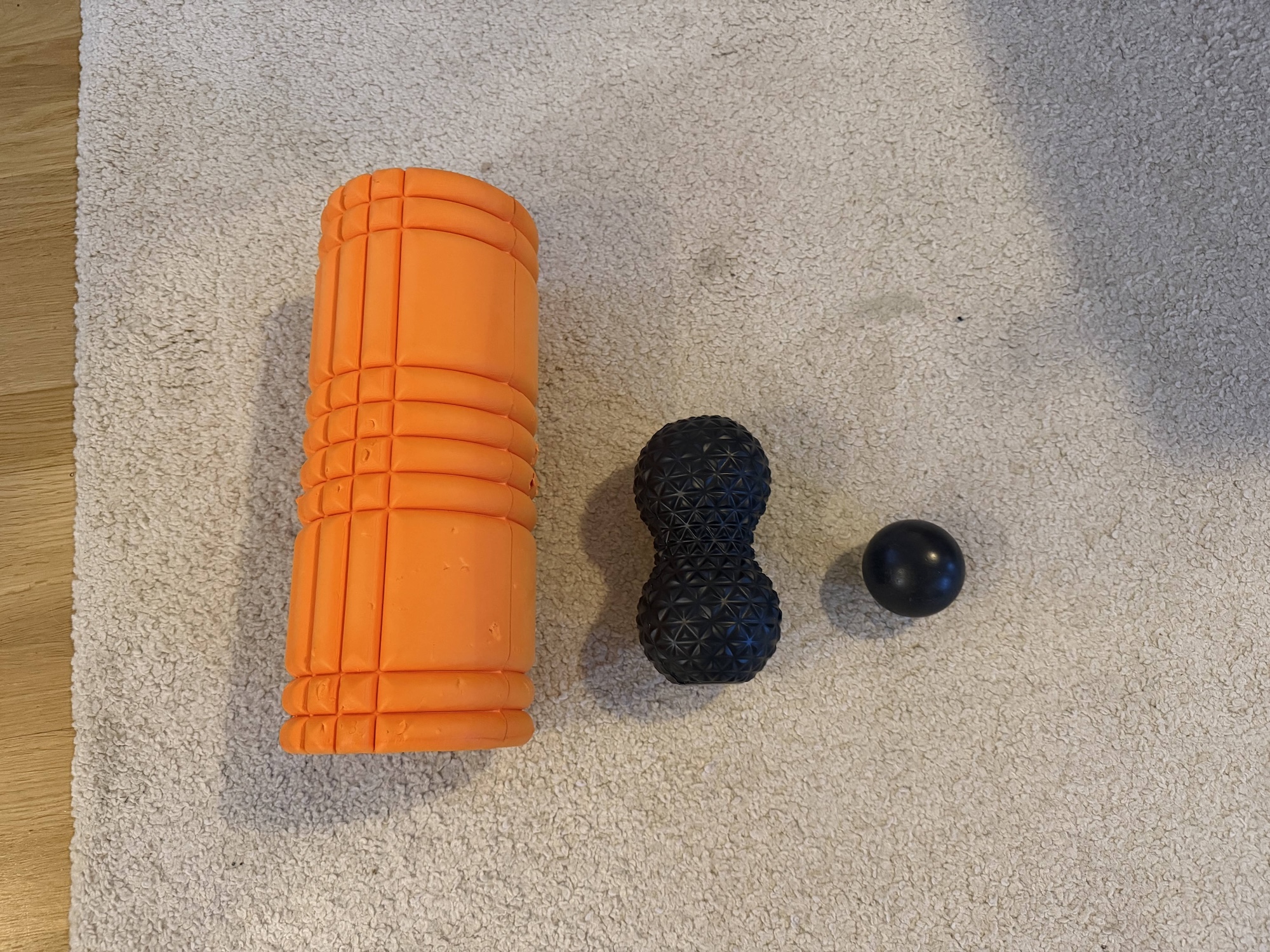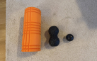 The foam roller. The big orange thing, you probably have seen variants of this one before. Mine is a plastic pipe with some foam around. Others are just foam of different densities. I prefer stiffer ones as it gives a bit more precision. A good alternative is just a piece of PVC piping with about 10 cm diameter.
