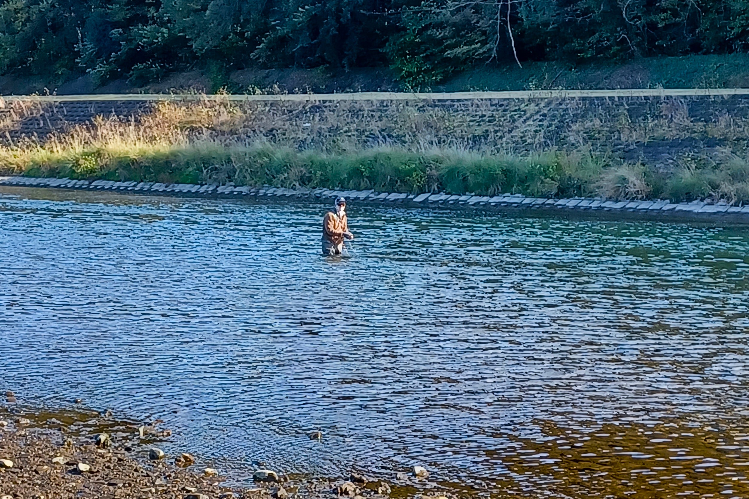 Winter has finally arrived here, unfortunately autumn was only about 2 days long. Last Tuesday was 26C and by the weekend it was low single digits overnight, so despite being fairly mild in absolute terms it feels freezing. Despite the cold turn Chuck and I foolishly decided to get the waders on and go out looking for smallmouth.