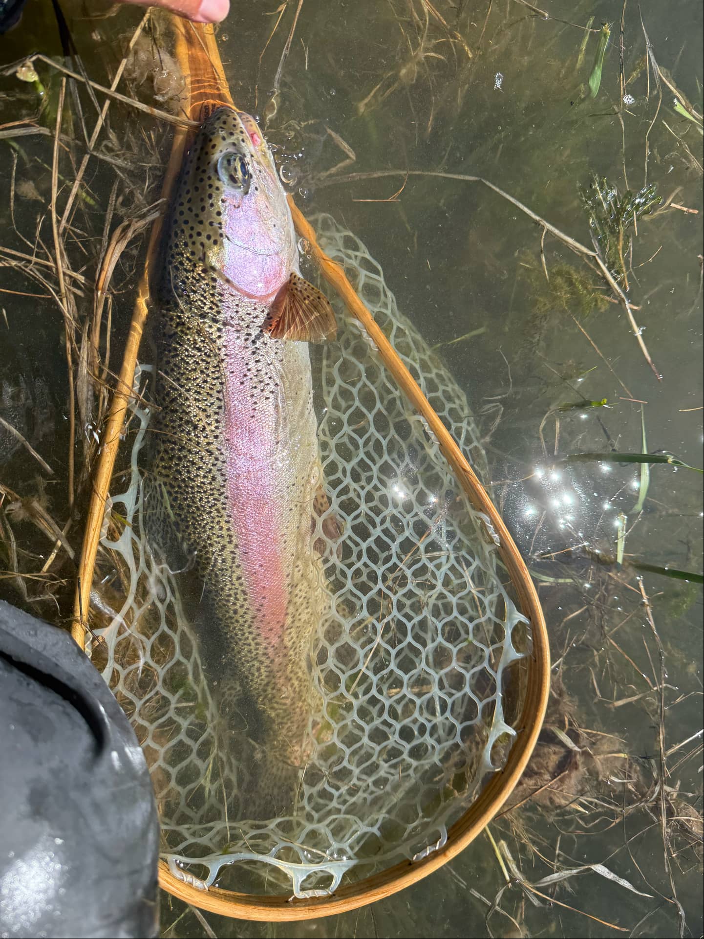 I worked on mending. It’s big water and currents were very confused. What seemed to work best was a cast to an invisible seam, seen only by Mason, with a quick roll of the bobber to sink the flies and bigger slipped mends to keep tension out of the system. The fish were often very “grabby,” requiring a quick set, so line management was also key. We didn’t catch tons of fish but had plenty of action. The fish were beautiful, fit, and usually crazy leapers. We added a day of wading after three in the boat, driving to the meadow section of nearby Fremont Canyon and, applying the same rigs and similar methods. We did very well catching some pretty large fish. This was, all-in-all, a very good trip. I’m going back.