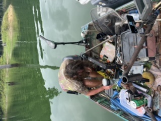 Last month I had a real scare. It was Richard’s first day of his trip and we decided to look at some water to the far south of the lake. George and Declan were camping at “Millipede Island” and so we had parked up the Battleship close-by. The fishing was surprisingly unproductive in the South but the afternoon saw some heavy rain, and sandwiched between a couple of storms all afternoon, we were hoping it would clear before the 25km run back to camp. It didn’t.